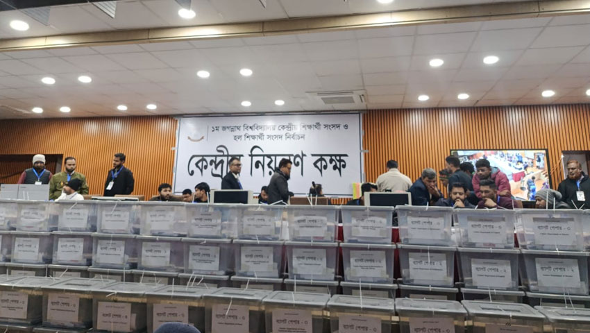 জগন্নাথ বিশ্ববিদ্যালয় কেন্দ্রীয় শিক্ষার্থী সংসদ (জকসু) নির্বাচনের ভোট গণনা যান্ত্রিক ত্রুটির কারণে স্থগিত ছিল। এরপর ম্যানুয়াল পদ্ধতিতে গণনা শুরু হলেও আড়াই ঘণ্টায়ও নৃবিজ্ঞান বিভাগের ২৭৮টি ভোট গণনা সম্পন্ন করতে পারেনি নির্বাচন সংশ্লিষ্টরা। ফলে, এখনো চলছে এক কেন্দ্রের ভোট গণনা।